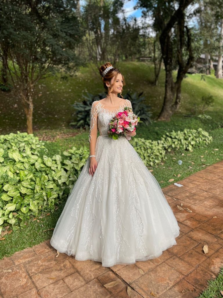 O prazo de entrega varia dependendo do design e dos detalhes do vestido. Em geral, recomendamos iniciar o processo com pelo menos 6 meses de antecedência para garantir tempo suficiente para ajustes e provas.