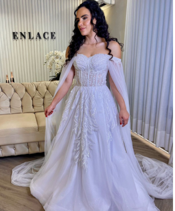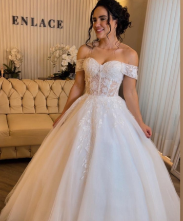 Na Enlace, oferecemos uma ampla variedade de vestidos de noiva, desde modelos clássicos e tradicionais até estilos modernos e minimalistas. Temos opções para todos os gostos e tipos de corpo, incluindo vestidos sob medida para garantir o ajuste perfeito.