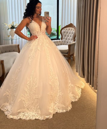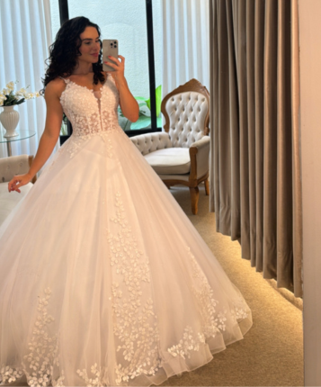 O prazo de entrega varia dependendo do design e dos detalhes do vestido. Em geral, recomendamos iniciar o processo com pelo menos 6 meses de antecedência para garantir tempo suficiente para ajustes e provas.